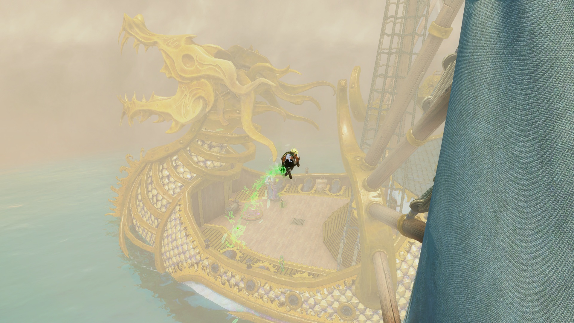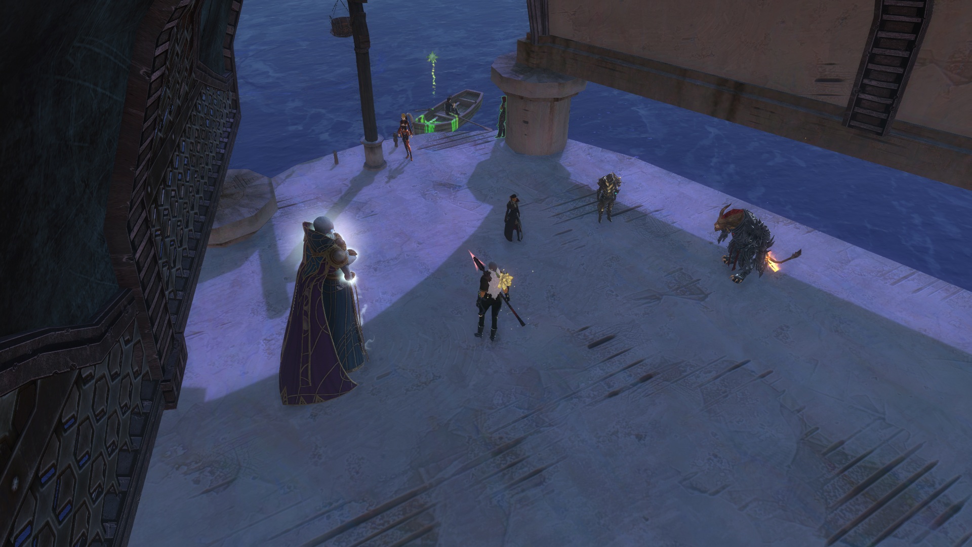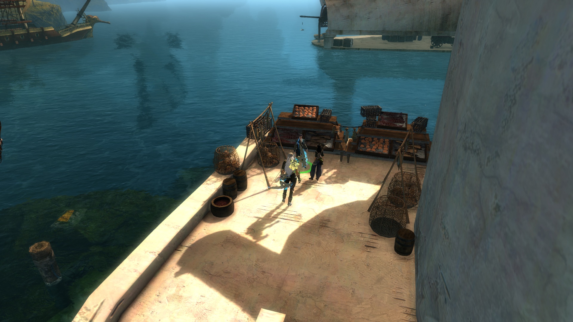 Sayida: Früh an diesem Morgen sah ich fünf Schiffe aus der Bucht auslaufen. Nirgends war verzeichnet, wo sie hinwollten. Die Besatzung gehörte zur Inquestur. Draußen vor der Küste stießen sie zu weiteren Schiffen der Inquestur. Meine Technik konnte das Signal verfolgen, bevor es abbrach. Leider trafen kurz darauf die Handelsschiffe aus Cantha und Elona ein, denen ich meine Aufmerksamkeit widmen musste.
