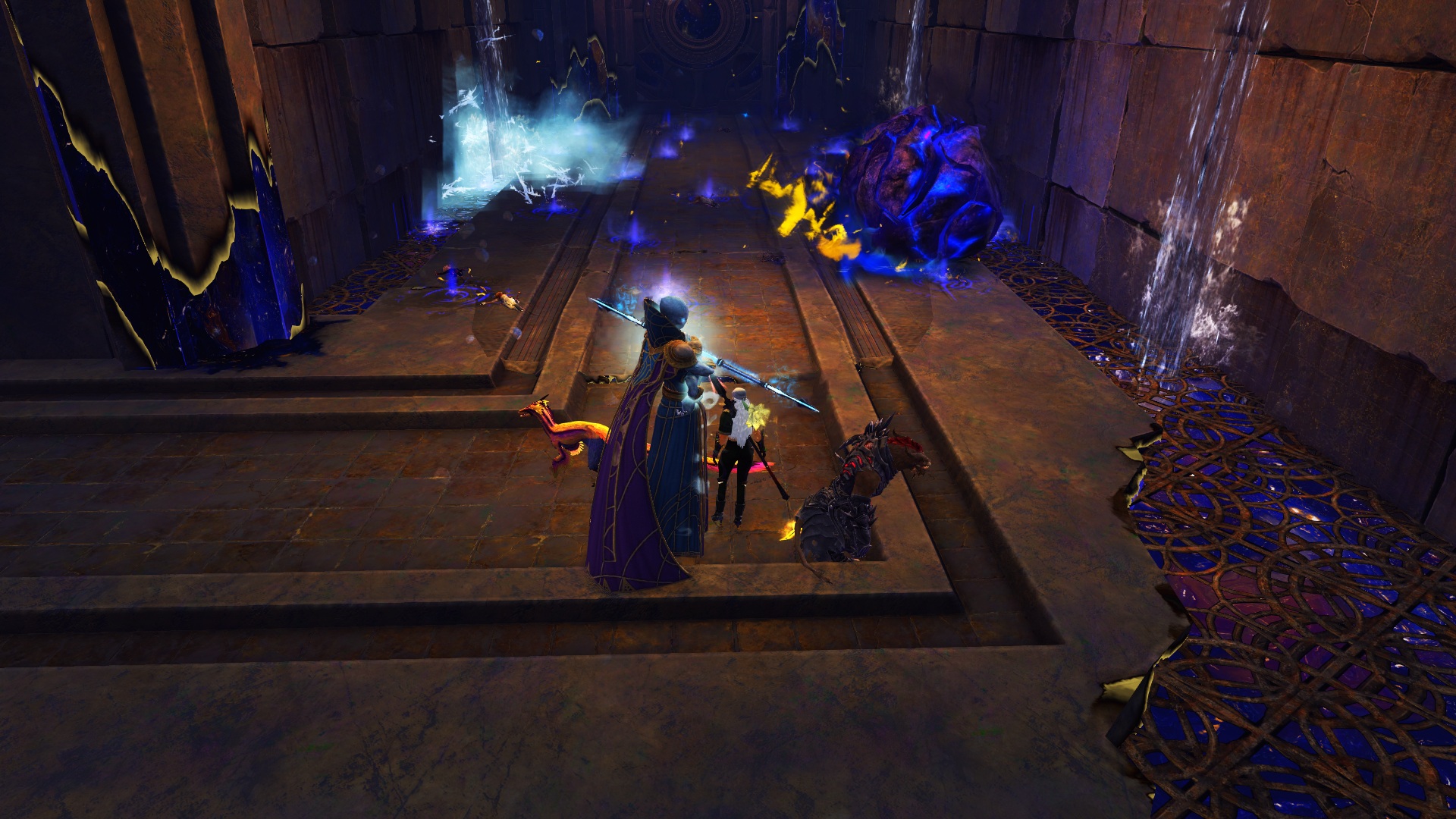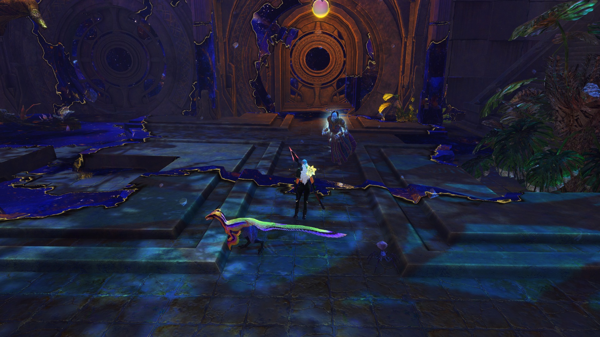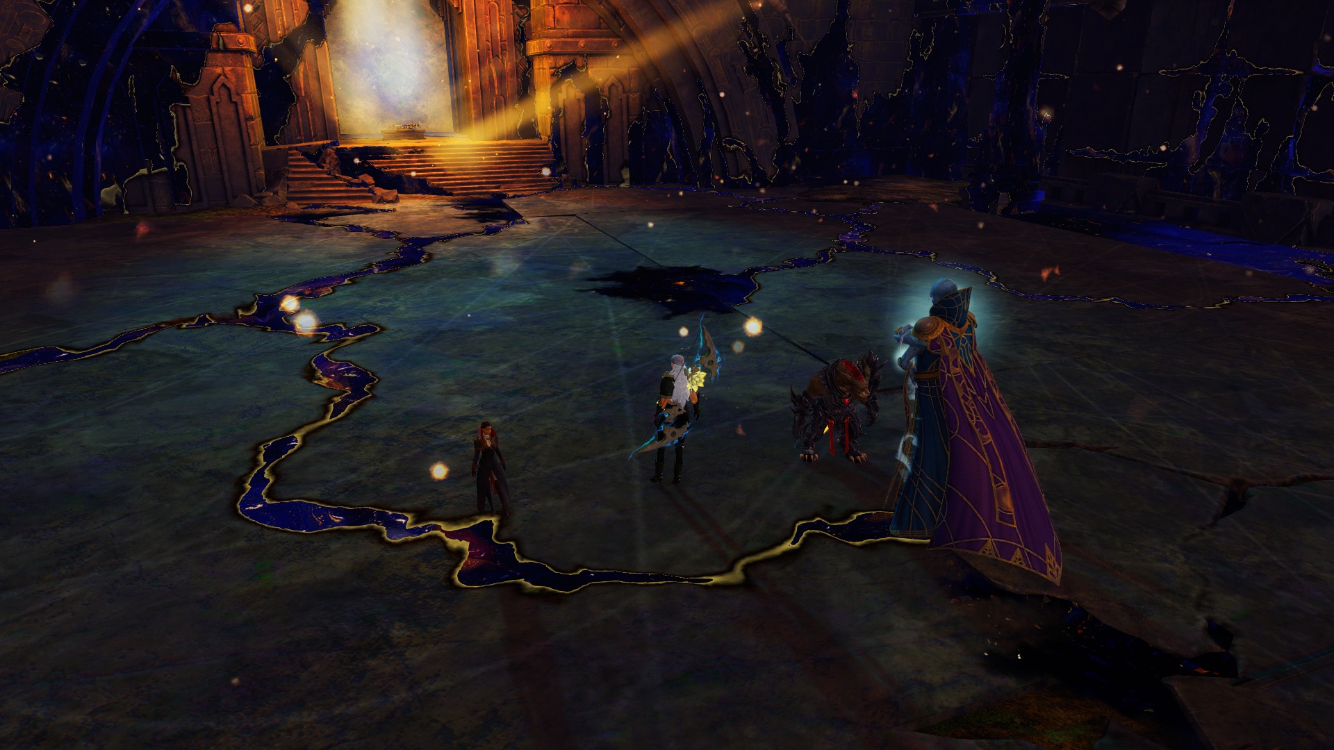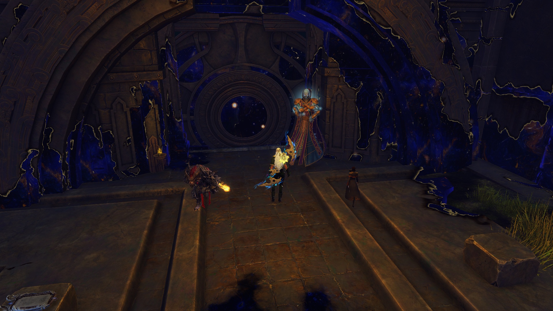Isgarren: Allerdings. Meine Leute waren ebenso theatralisch wie pragmatisch. Die Tür scheint mit einem mehrstufigen Zauber versiegelt zu sein. Um sie zu öffnen, müssen wir jede Stufe manuell aktivieren, damit das Schloss aufspringt. Die Aktivierungspunkte dürften hier irgendwo in der Nähe sein...Aber da es unter uns keinen Gewölbewächter gibt, müsst ihr sie aktivieren, Wegfinderin. Wenn ich es versuche, passiert vermutlich etwas schlimmes.