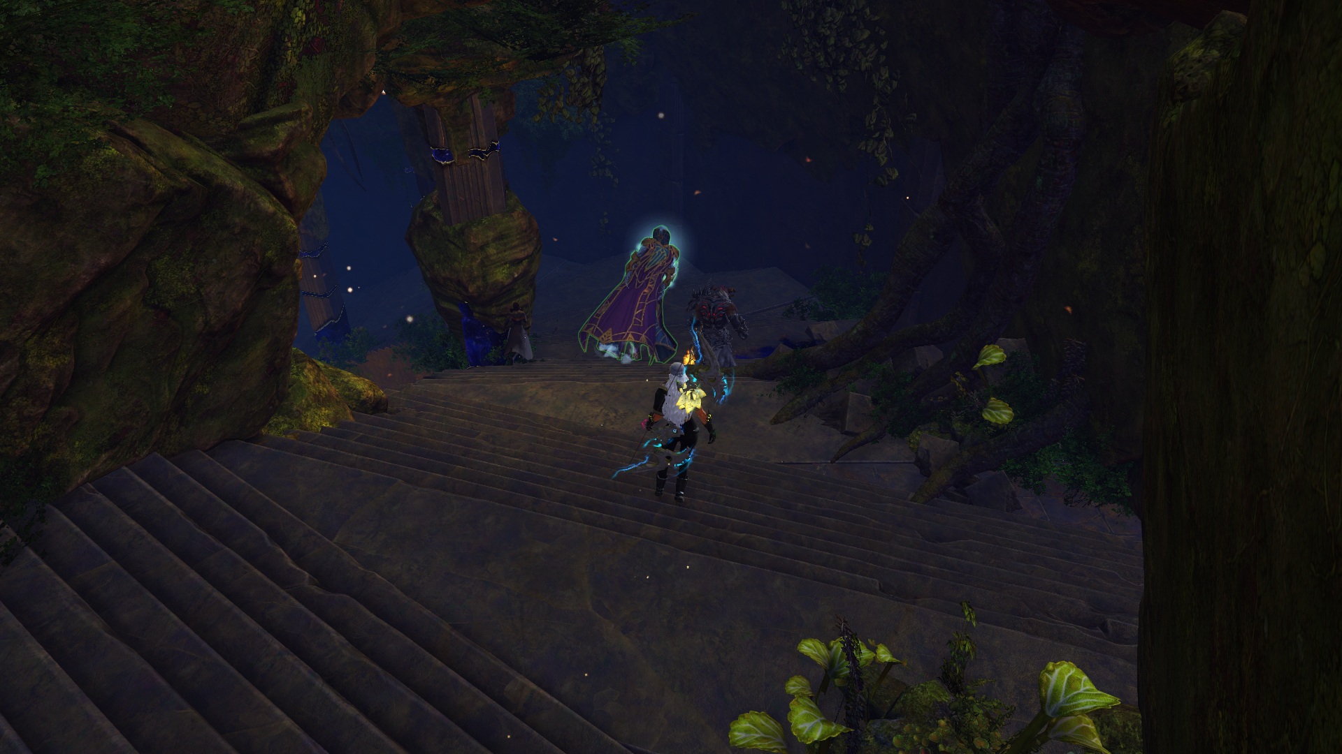 Isgarren: Wenn jemand einen Zauber wirkt, der mehrere Bindungsrunen erfordert, ist das sehr anstrengend für ihn. Diese Essenz liegt noch lange in der Luft. Wenn ich die Stelle finden kann, wo der Zauber ursprünglich gewirkt wurde...dann können wir vielleicht ist ansehen, wie man die Runen beschworen hat. Ich muss mich konzentrieren. Es wird klarer, wenn ich es Euch zeigen kann. Kommt, Wegfinderin.
