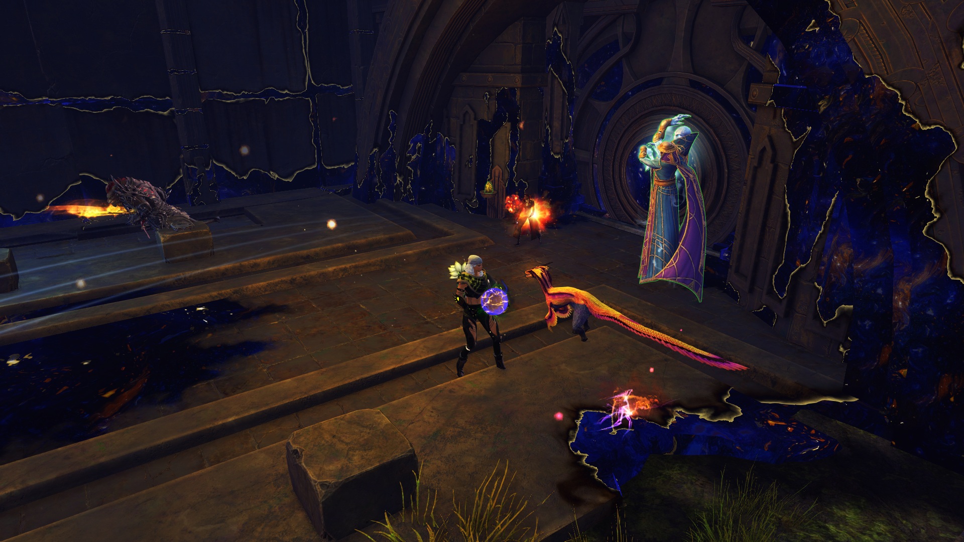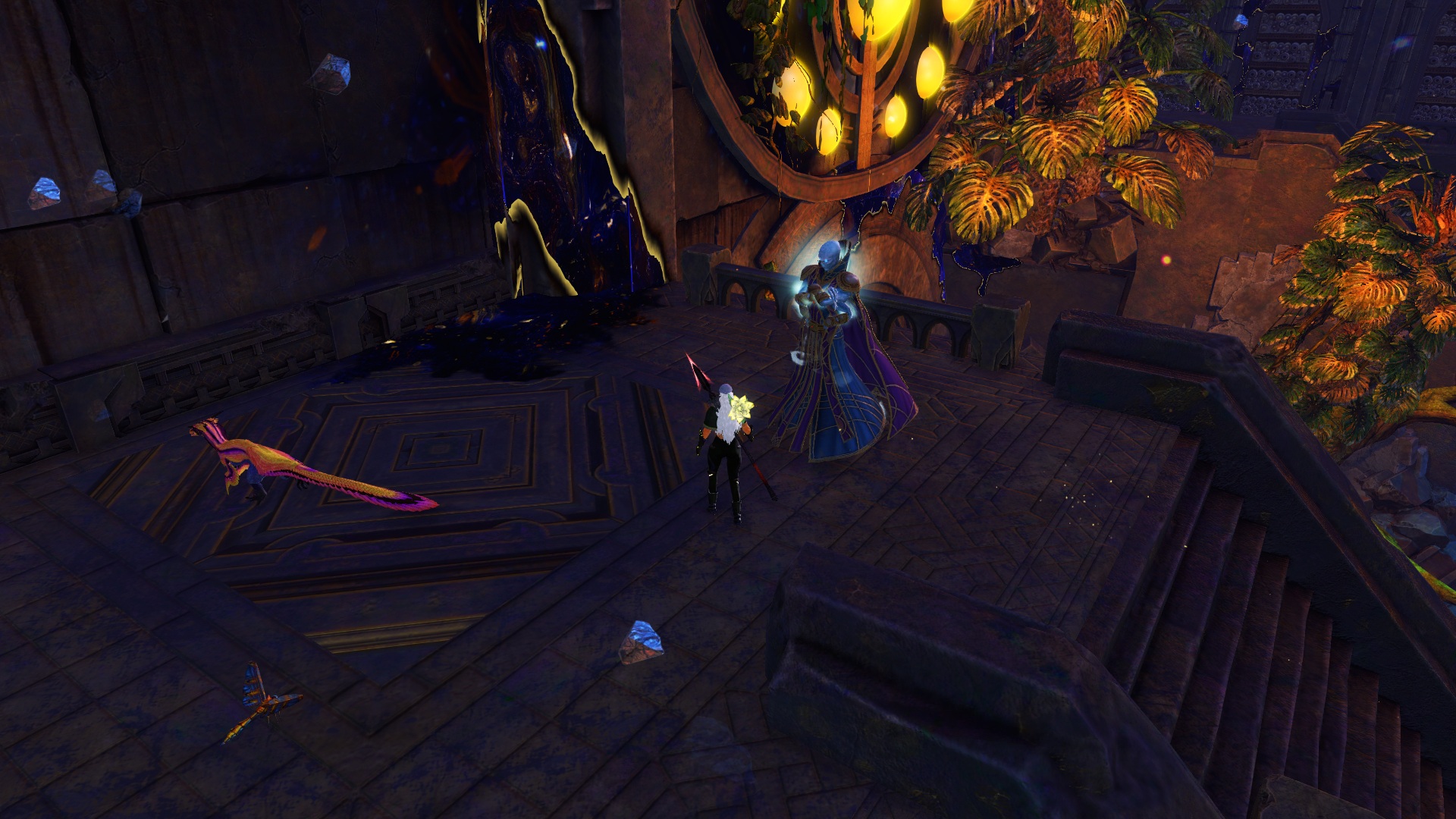 Isgarren: Einfacher wäre es nicht, aber auch keineswegs unmöglich. Und dass er schlau ist, hat er ja schon hinreichend bewiesen...Die Kryptis wurden angetrieben von Gefräßigkeit und Rachsucht. Die Titanen von ihren Instinkten. Aber wir haben keinen Ahnung, was Vloxx eigentlich treibt. Und jetzt hält er eines der gefährlichsten Medien von Tyria in der Hand. Niemand weiß, was er damit anfangen will. Er stellt eine sehr reelle Bedrohung für uns und all unsere Volker dar. Wir müssen ihn aufhalten, bevor sein Ehrgeiz alle in Schutt und Asche legt.