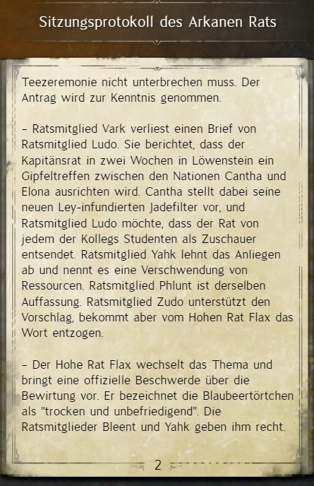 Char: Ich sollte mich mit Ratsmitglied Ludo kurzschließen. Vielleicht weiß sie was darüber.