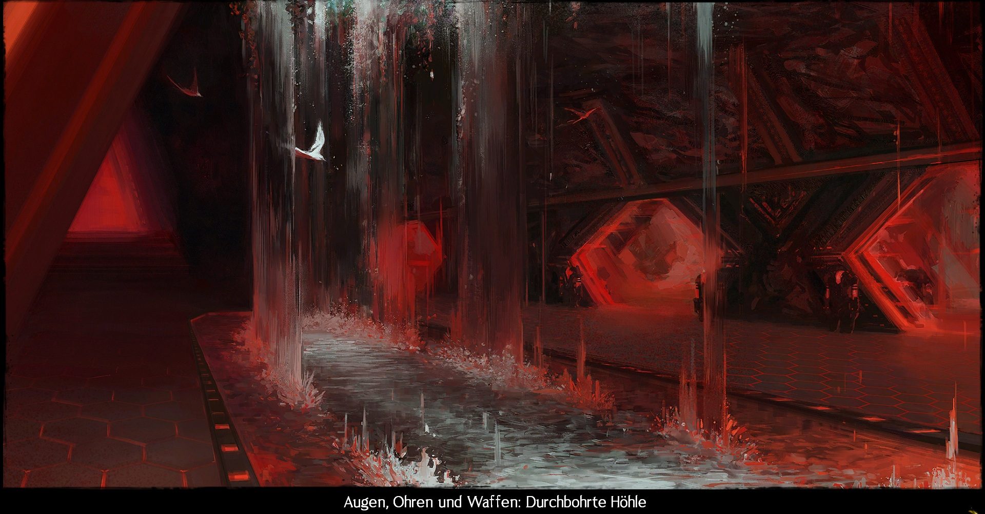Ludo: Lasst mich meinen Bestätigungscode eingeben. Was denn? Ich habe Sicherheitsstufe A2! Da muss jemand meine Identifikation manuell blockiert haben. (seufzt dramatisch) Wir brauchen eine Physikalische Zugangskarte. Seht Euch um. Vielleicht hat einer der Arbeiter irgendwo eine abgelegt.
