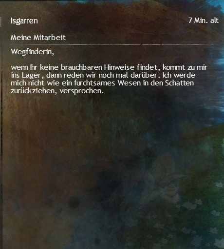 Isgarren: Ein Echo wird lauter...Vielleicht...Ja. Wir müssen tiefer hinein.