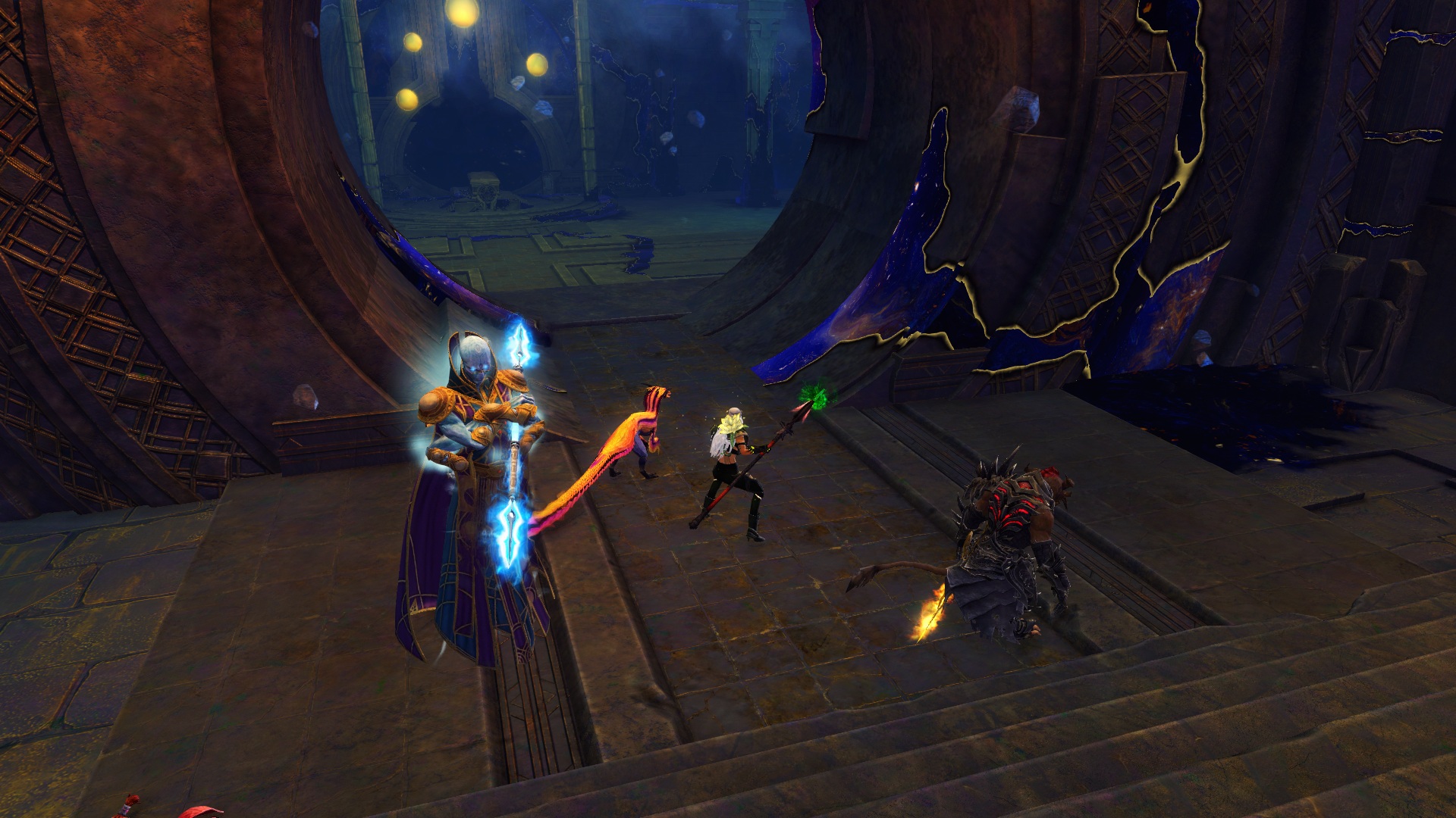 Ludo: Wir können ein Portal nehmen, das uns im unteren Stockwerk absetzt. Dann sind wir schon mal nahe am Labor des Hohen Rats. Von da aus überlegen wir uns eine Strategie.
